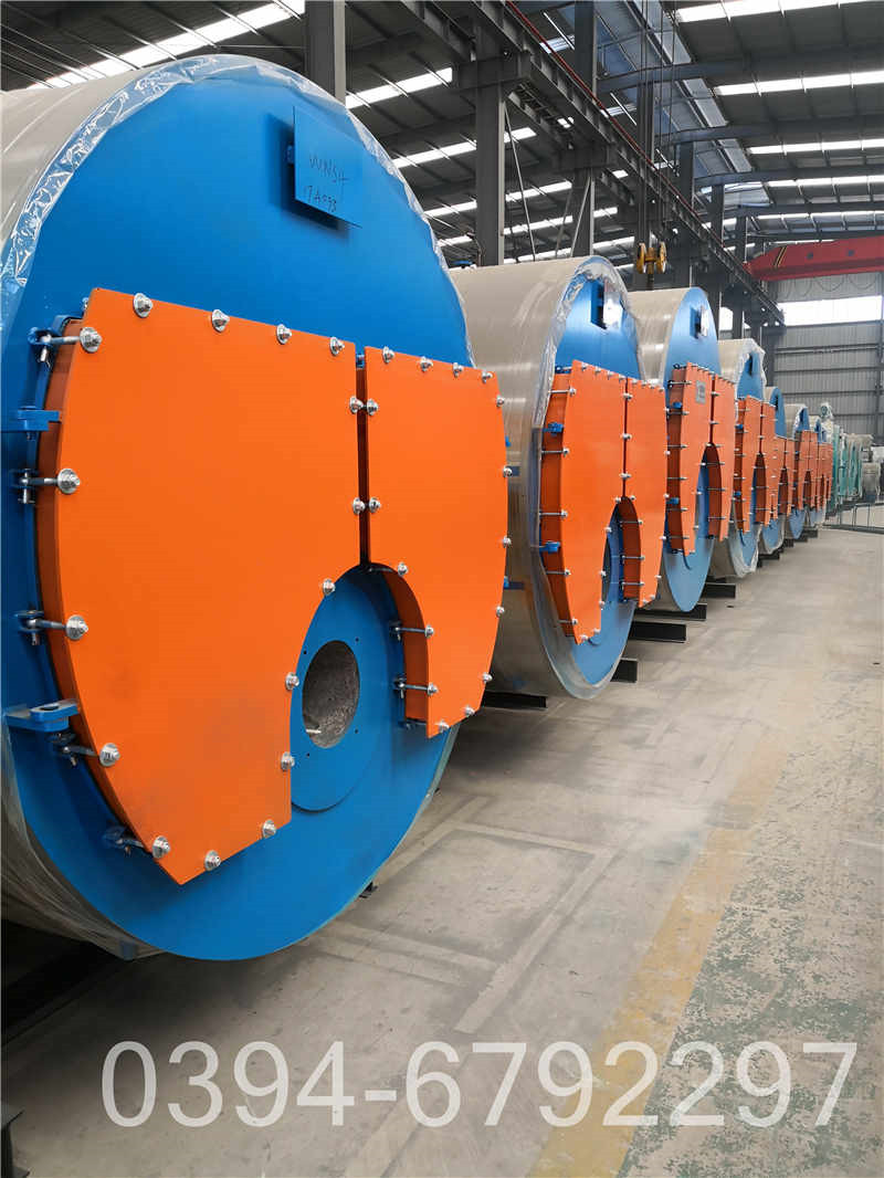 4、煙風(fēng)道法蘭間均嵌石棉線,使接頭處嚴(yán)密不漏。5、煙風(fēng)道上的排煙溫度表,應(yīng)裝在清晰易見的位置。㈤ 安,,全附件、,一噸冷凝燃油鍋爐,閥門、儀表、管道及附件的安裝汽水系統(tǒng)安裝應(yīng)符合TS0001-2012《鍋爐安全技術(shù)監(jiān)察規(guī)程》的規(guī)定:1.管道、閥門、儀表的安裝應(yīng)按照自動(dòng)控制的要求(或者電控柜線路圖)以及有關(guān)圖紙進(jìn)行安裝。2.燃料供應(yīng)管道應(yīng)裝流量計(jì),且該流量計(jì)必須同時(shí)具備指示、積算、記錄功能;同時(shí)還必須安裝指示燃料溫度的溫度表和和指示燃料壓力的壓力表;3、安全閥應(yīng)在水壓試驗(yàn)后鉛直安裝,安全閥應(yīng)接裝排汽管,將排汽導(dǎo)向鍋爐房外安全處,并有足夠的流通截面積,保證排汽暢通;4、進(jìn)鍋爐前給水管道上必須安裝具有指示、積算、記錄功能的流量計(jì);5、排污管接至排污溝或其它安全處,管道應(yīng)固定,防止排污時(shí)移位或發(fā)生反擊燙傷事故等;6、總汽閥以外的蒸汽管道由使用單位配接,在總汽閥管道上至少有一個(gè)彎頭,否則應(yīng)加裝伸縮管,管道外壁應(yīng)加保溫層;7、水位表下部泄水管,必須接入安全之處,水位表考克旋轉(zhuǎn)要靈活,不得漏水,水位表應(yīng)有指示高、低安全水位和正常水位的明顯標(biāo)志,且必須安裝照明設(shè)備,便于觀察;㈥ 水壓試驗(yàn):水壓試驗(yàn)應(yīng)符合TS0001-2012《鍋爐安全技術(shù)監(jiān)察規(guī)程》第4,以滿足鍋爐及其系統(tǒng)高效運(yùn)行的要求,鍋爐產(chǎn)品型號(hào)標(biāo)注說明:WNSxx-xx-Y。水位表和鍋筒之間的汽水連接管上應(yīng)當(dāng)裝設(shè)閥門,鍋爐運(yùn)行時(shí),應(yīng)當(dāng)處于全開位置。