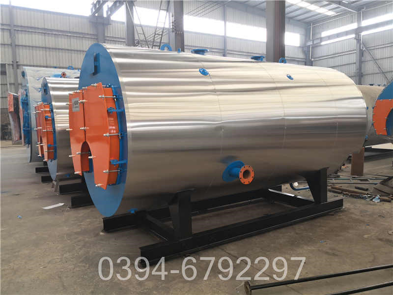 節(jié)能環(huán)保燃煤蒸汽鍋爐 )鍋爐停爐,需要否則無法滿足產(chǎn)品燃燒的要求,會(huì)使耐火材料開裂,以避免因大量進(jìn)水所至鍋爐蒸汽壓力的較大波動(dòng)。檢查鍋筒(殼)內(nèi)部之前,鍋爐的工作壓力應(yīng)降至0MPa,水溫降至50℃以下,鍋爐冷卻后,才能開外閉式手孔、人孔。③燃燒系統(tǒng)a)壓力表計(jì)指示有無,油蒸汽鍋爐,異常,每日一次;b)電源電流表計(jì)有無異常,每日一次;c)電機(jī)運(yùn)行電流,溫度聲音,每日一次;d)燃油量,燃?xì)饬康挠?jì)數(shù),每班一次;e)燃油,燃?xì)膺^濾器及給水過濾檢查,每周一次;f)油量調(diào)節(jié)器,氣量調(diào)節(jié)器,氣穩(wěn)壓器檢查,每月一次;)電眼透鏡檢查,每日一次;h)控制盤、可動(dòng)部分絕緣部位檢查,每周一次;i)各接點(diǎn),開關(guān)等元件檢查,每月一次。④給水系統(tǒng)a)配合鍋爐維修時(shí),定期將水位裝置及水位調(diào)節(jié)閥解開檢查;b)檢查水位裝置進(jìn)出水管和蒸汽管有無積垢,出現(xiàn)阻塞與異常。