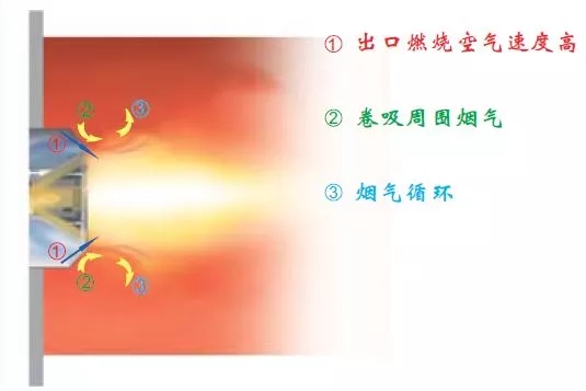 分級(jí)燃燒技術(shù)雖然可以一定程度降低氮氧化物的產(chǎn)生,但是很多燃燒器在實(shí)際使用中沒有完全實(shí)現(xiàn)助燃空氣和燃?xì)獾某浞只旌希瑺t膛內(nèi)存在局部高溫區(qū),其溫度高于產(chǎn)生熱力型NOx的溫度,造成NOx濃度超標(biāo)。另一方面,有可能出現(xiàn)燃料和空氣的混合流動(dòng)不佳,造成一氧化碳超標(biāo),局部積碳等不完全燃燒的現(xiàn)象。為了降低反應(yīng)溫度,需要盡可能使火焰分散,擴(kuò)大火焰形狀,也就是說需要結(jié)合爐膛配合使用,而大多是情況是爐膛體積有限,為了避免火焰相對(duì)爐膛過大,通常會(huì)降低燃燒器的輸出功率,這樣可以降低NOx濃度及保證充分燃燒,但是缺點(diǎn)是鍋爐的功率下降了,而且有煙氣冷凝的風(fēng)險(xiǎn)。
